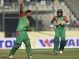 Tamim Iqbal cracked two boundaries off spinner Saeed Ajmal to reach his fifth ODI hundred. He then put his bat down, took off his gloves and faced the galleries to gesture with hands, suggesting 'less talk'.